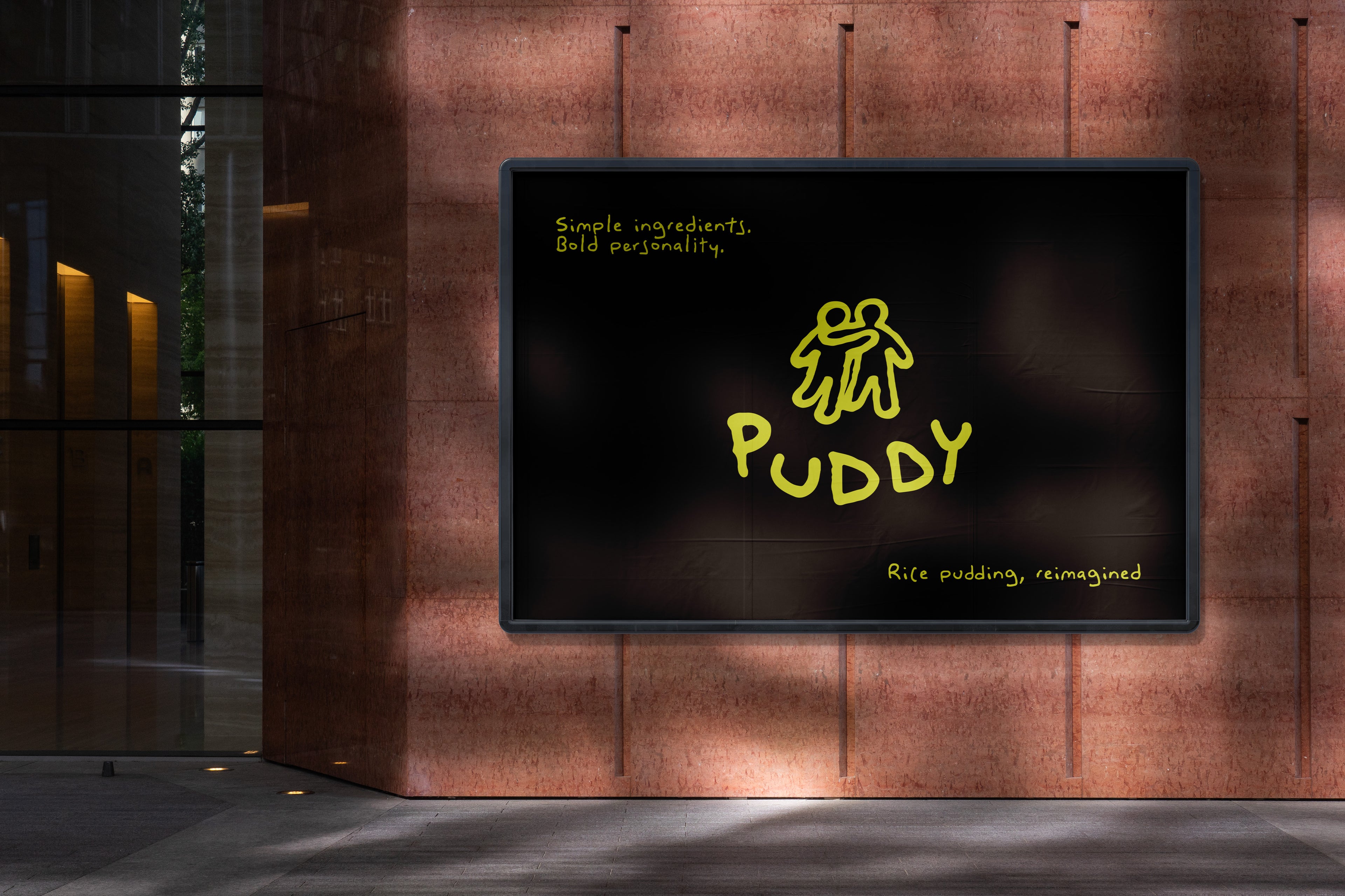 Puddy is a rice pudding brand, but not in a predictable or nostalgic way. We want to communicate emotional comfort with personality: a brand that feels warm, human and calming, while still being playful, modern and slightly unexpected.