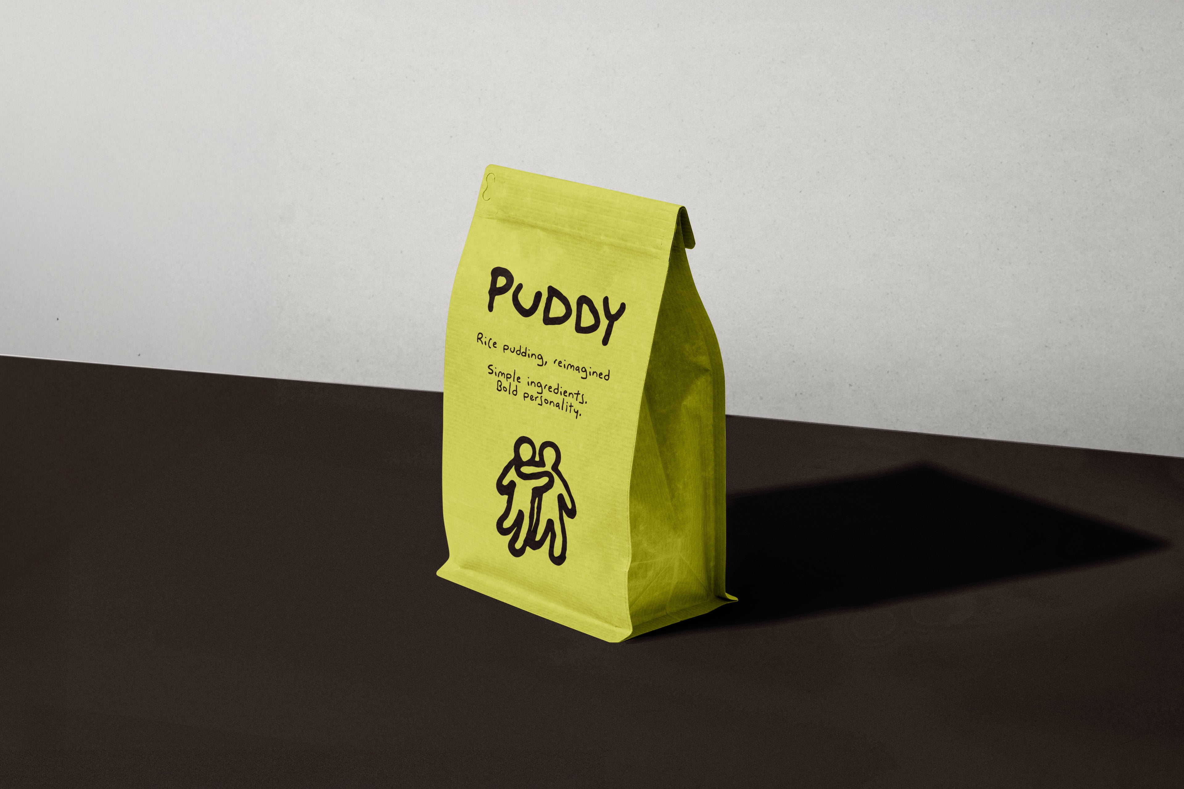 Puddy is a rice pudding brand, but not in a predictable or nostalgic way. We want to communicate emotional comfort with personality: a brand that feels warm, human and calming, while still being playful, modern and slightly unexpected.